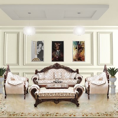 Solid teak wood customised carving walnut shaded pu polish velvet upholstery plain velvet w embroidery cushion centre table glass top with customised artwork