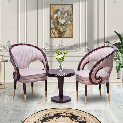 Wallnut mat polish solid wooden teak with carving velvet pattern fabric